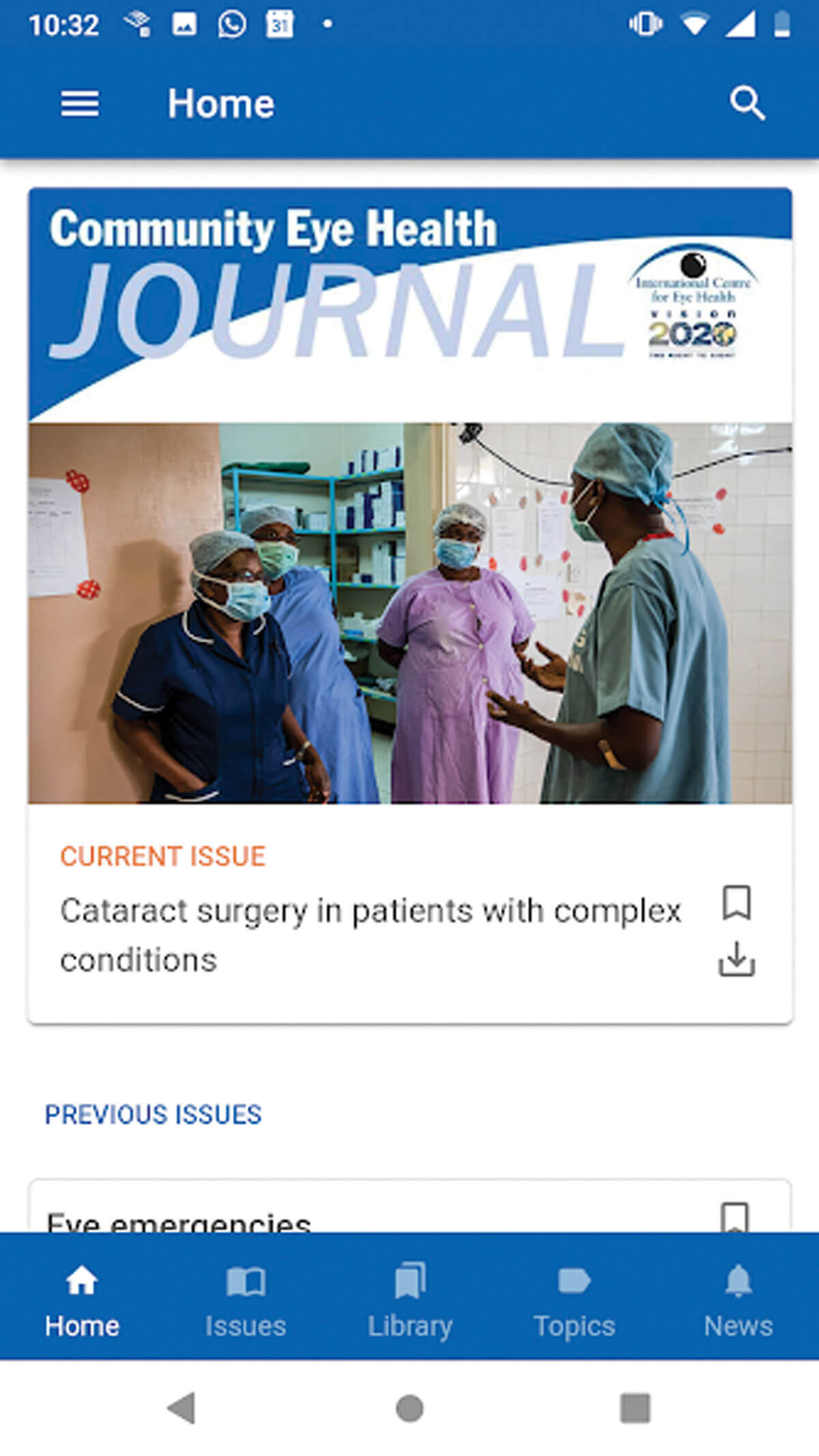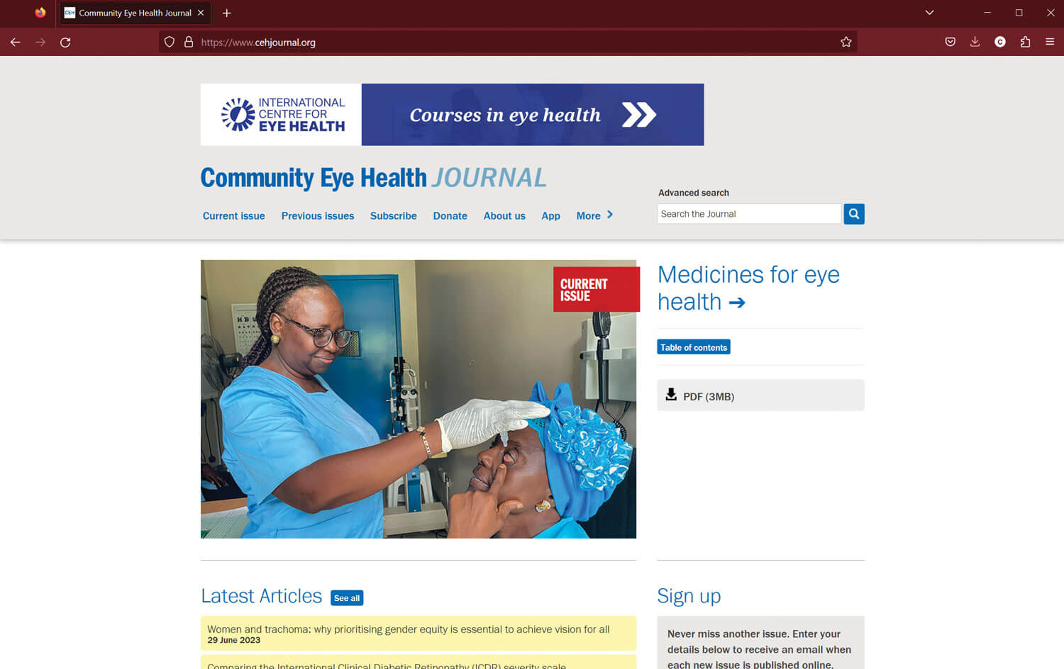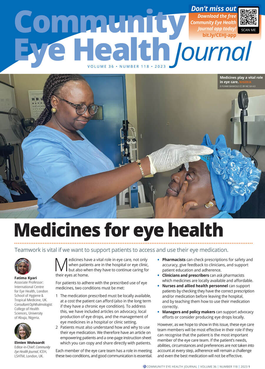 The Community Eye Health Journal (CEHJ) was established at the International Centre for Eye Health over 30 years ago. Our aim is to support eyecare providers, managers and policy makers in their efforts to reduce avoidable blindness and improve eye health. For many of our readers, the CEHJ is their key source of staying updated and may be their only access to ongoing learning.