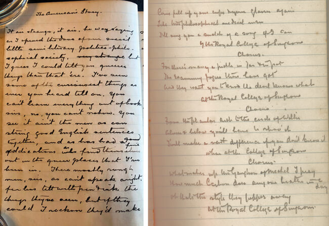 Left: Page 1 of handwritten draft The American’s Story. From the collections of The Royal College of Surgeons of Edinburgh.