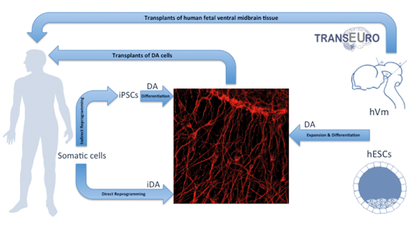 These issues will be addressed in a small open label study of fetal hVm transplants to patients with early PD, which has just started with the first patients being grafted in the UK. However, even if the clinical trial will be successful, this approach with fetal transplants will never become a widespread therapy as tissue availability is limited along with ethical issues that surround the use of fetal tissue. Nevertheless, these fetal cell treatments have paved the way for newer stem cell based treatments to replace the missing dopamine (DA) neurons in people with PD.