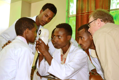 Optometrists carry out much primary medical and surgical eye care in Ethiopia and are highly trained. They particularly valued teaching in slit-lamp usage, field testing and indirect ophthalmoscopy. Our senior nurses Lorraine and Mark also taught theatre procedure and sterile technique as well as keratometry for biometry.