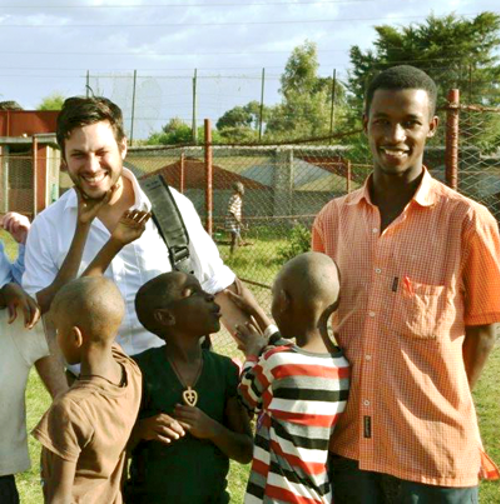 Children at the blind school enjoy the feel of Tom Betts’ beard.