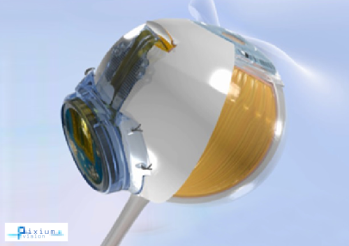 Paris-based Pixium Vision obtained CE mark certification of its IRIS®II bionic vision system in July 2016. The ‘Intelligent Retinal Implant System’ V2 is a 150-electrode epiretinal implant equipped with a bio-inspired camera designed for people with vision loss from outer retinal degeneration. IRIS II features an explantable design. The electrode array is secured on the retinal surface by a patented support system intended to allow for explantation so as to facilitate future next-generation replacements or upgrades to hardware and / or software. Another distinctive feature is a bio-inspired camera intended to mimic the functioning of the human eye by continuously capturing changes in the visual scene with its time independent pixels.