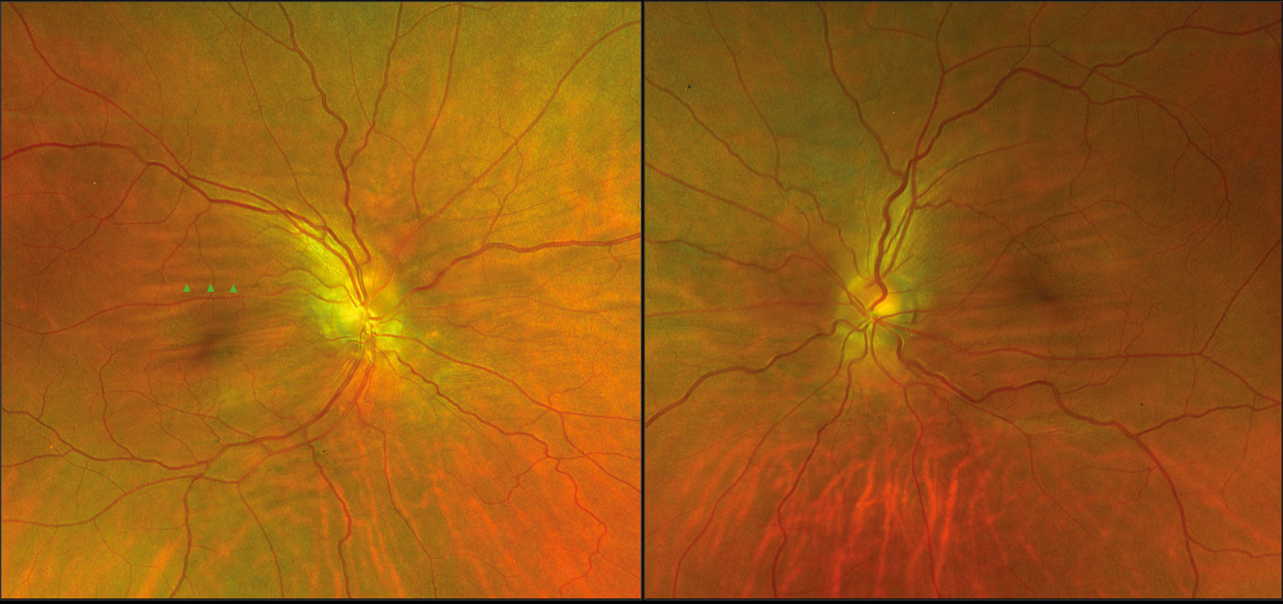 Figure 1: Bilateral choroidal folds with horizontal corrugations.