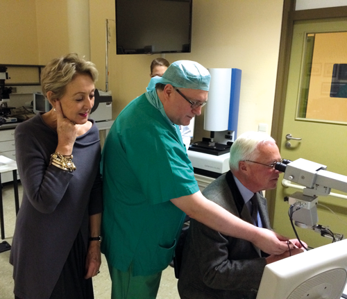 Lauretta Ridley looks on as Prof Auffarth assists Nicholas Ridley