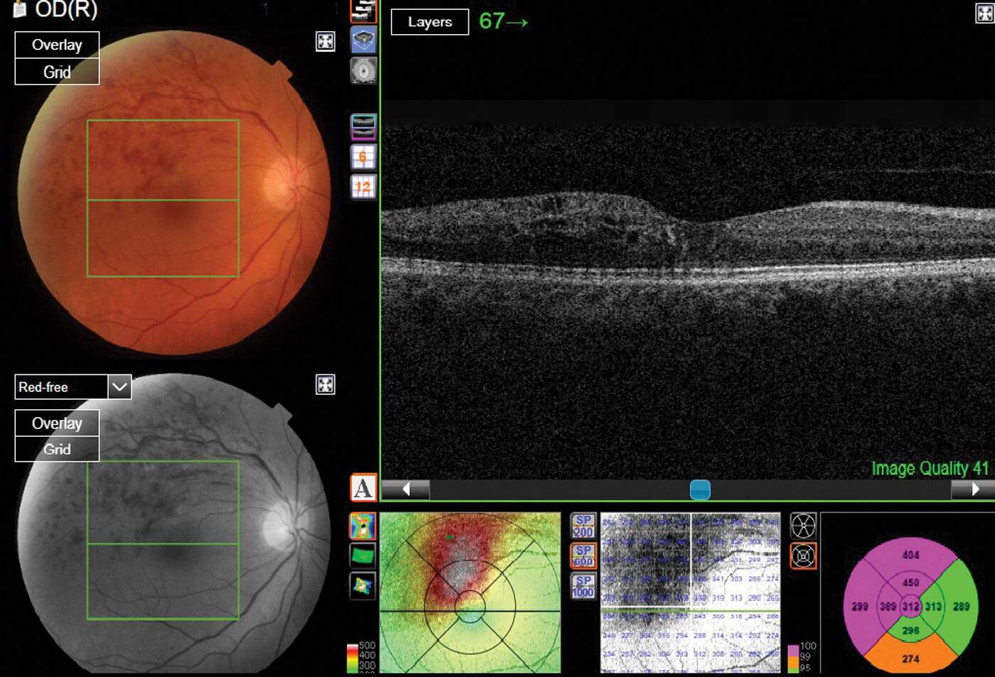 Upon initial appointment into our role, the virtual clinics assigned to us involved assessing common medical retina conditions, including ARMD, central and branch retinal vein occlusions, and diabetic macular oedema. These patients were previously diagnosed following a clinic appointment or had already been on a treatment pathway. As specialists, we would assess the OCT and document any findings within the patients’ notes. This not only includes interpretation of the OCT images, but also incorporates comparing visual acuity fluctuations, any prior intravitreal treatments commenced, with the quantity and dates of these noted.