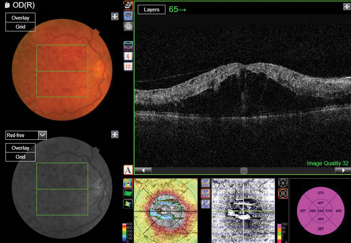 Figure 3: An optical coherence tomography (OCT) scan depicting a central retinal vein occlusion (CRVO).