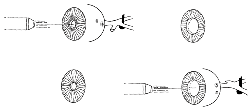 Figure 4: A dense cataract might stop the peripheral retina from picking up hand movements in the visual field. It would need to be exceedingly dense to prevent awareness of light in the four quadrants.