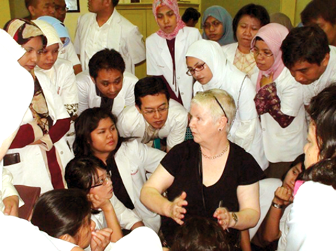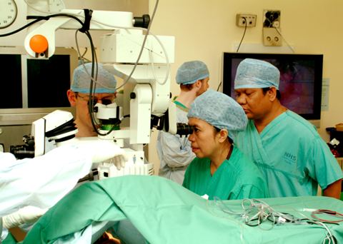 Addressing the priority training needs in the activity plan, 10 members of staff from Makassar - senior residents (specialist trainees) and junior members of the permanent staff (lecturers / consultants) - have visited Dundee over the last five years. Three nurses have visited, as enhancing skills of a new generation of nurses was a priority. Visits to Makassar by the Dundee team have included head orthoptist Irene Fleming and optometrists from both hospital (Aileen Buick) and community (Pam Robertson). In one visit the Head of Theatre Nursing Lesley Malcolm undertook practical teaching. Andrew Blaikie, Paediatric Ophthalmologist, also visited, as the teams observed that a new case of retinoblastoma was seen during every visit, but chemotherapy was not considered without tissue diagnosis. A one-day symposium was arranged by the team in Makassar to which the paediatric department were also invited, with Dr Blaikie as keynote speaker. At the end of the symposium it was agreed that an entire turn-around on this policy was needed and the change was effectively implemented between the two departments from that point. This kind of decisiveness is, in turn, a challenge to those of us used to the inertia of the NHS!