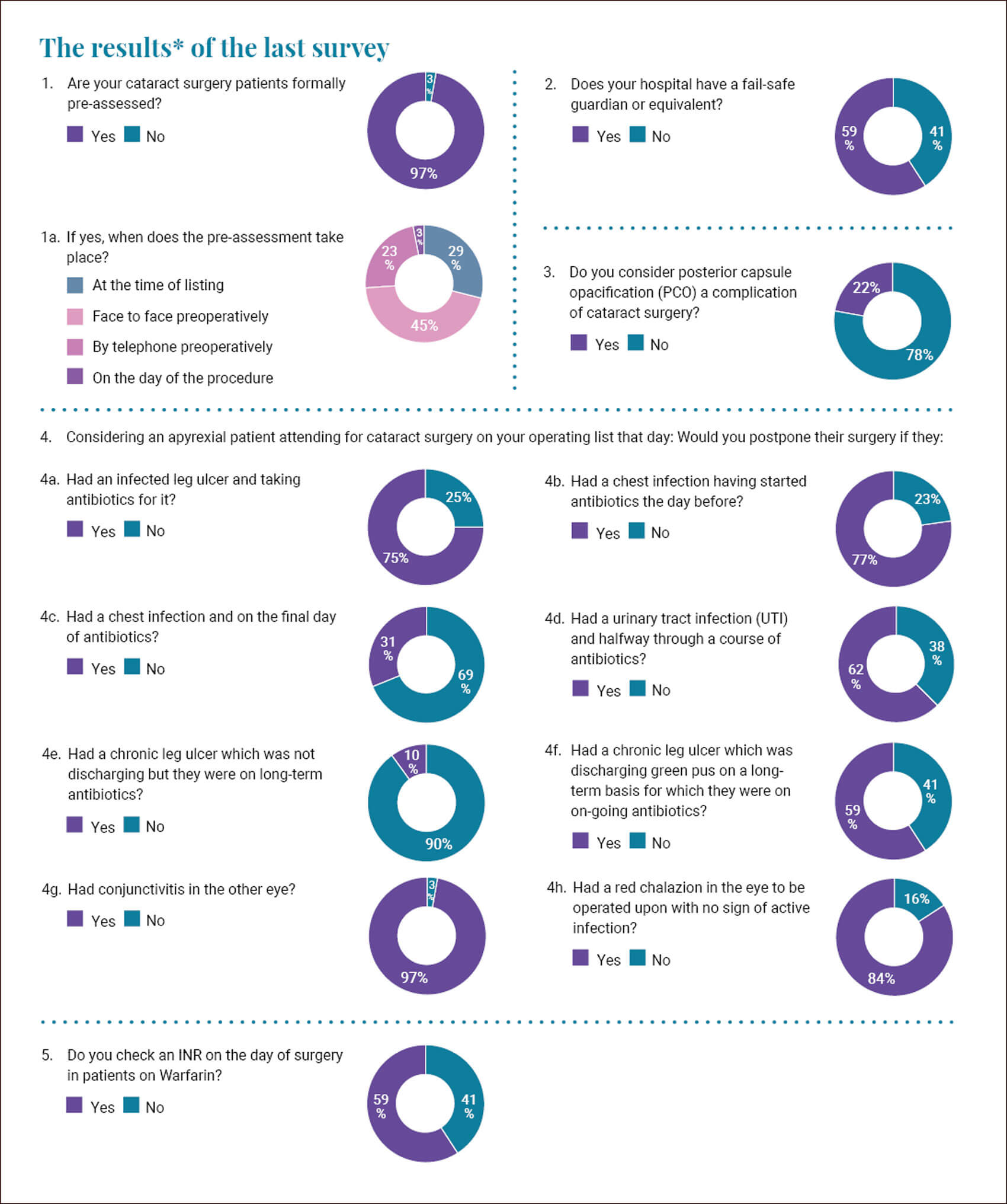 My thanks for all those who took part in our latest survey. I was relieved to see that the vast majority of your cataract patients are pre-assessed. I think this is important and has positive effects on optimising medical and ocular conditions for surgery, and also minimising the risk of cancellations on the day.