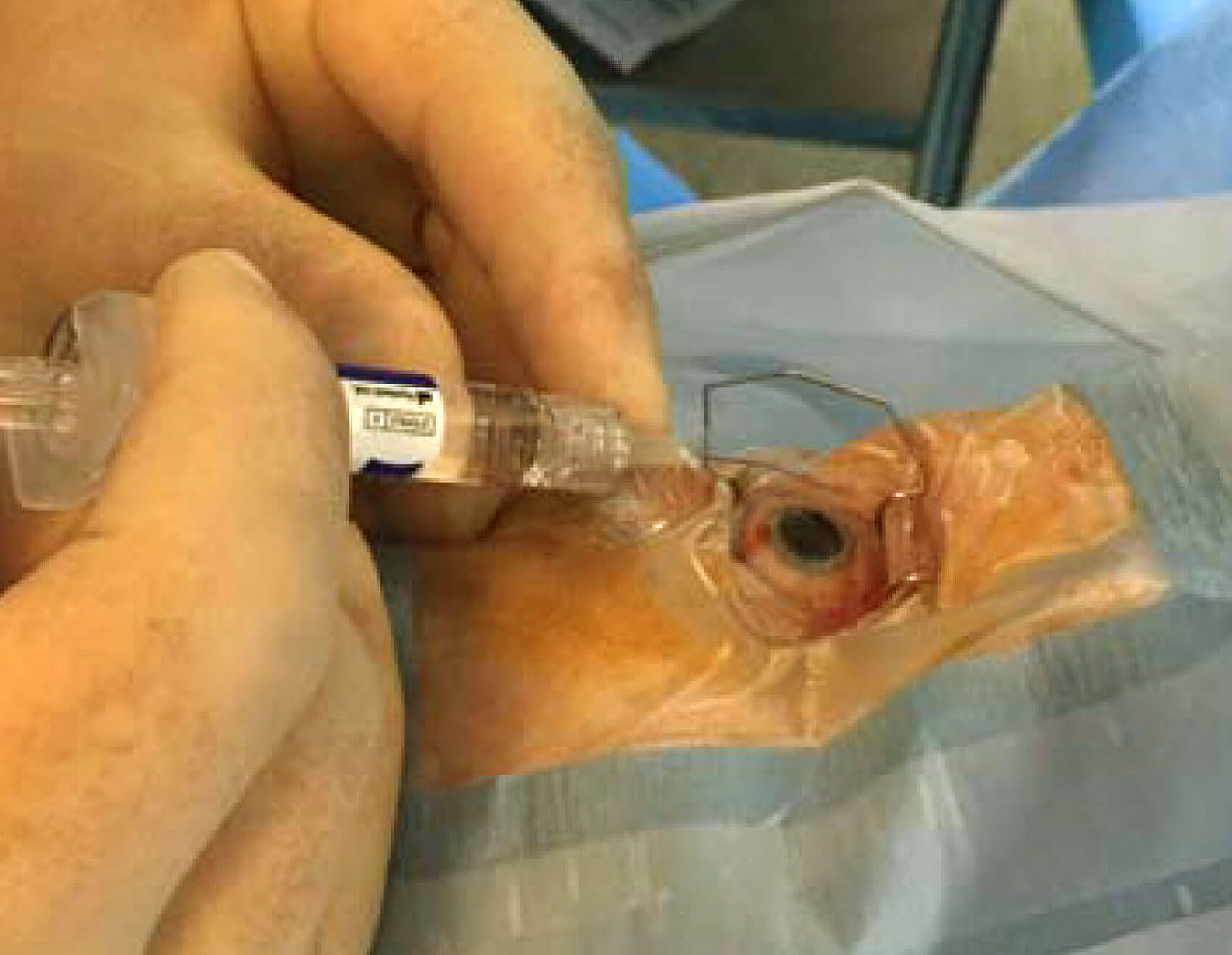 I still see regular incident reports and litigation cases surrounding the cannula flying off in the eye causing intraocular trauma. The hyrdraulic pressure / force generated is quite significant and the cannula can fly off with considerable momentum. It can be a blinding injury and is entirely avoidable. I recommend everyone has a ‘finger of safety’ (Figure 1) on the cannula when they are using it. This means that if the cannula does come loose, it simply rotates and falls off rather than being ejected with force.