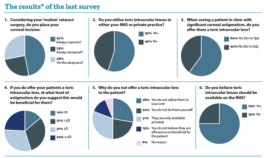 In the interests of openness, I have to say that I am a toric intraocular lens (IOL) fan and use them extensively in my private practice. I believe that the quality of vision the patients will achieve is better than correction with spectacles or contact lenses. We are obliged to offer patients any treatments which we think would be beneficial to them.