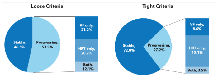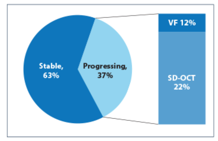 Figure 2: Number of progressing ocular hypertensive eyes and basis of progression,