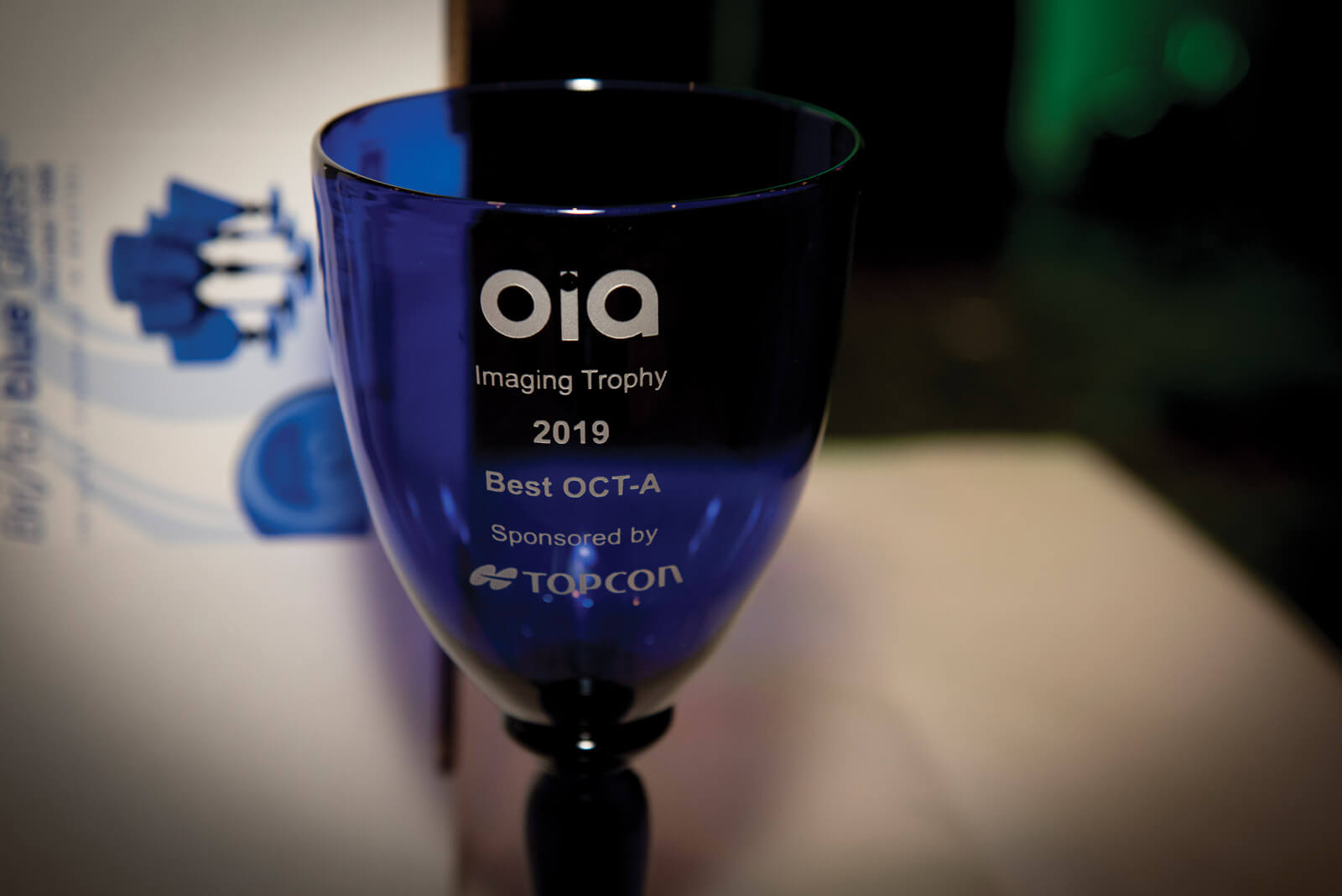 The competition currently has seven technical categories into which members can submit their images: Posterior Segment, Anterior Segment, FFA / ICG Angiography, OCT, OCT-A, Ophthalmic Related and Case Report. Each category has a first and second-placed winner and from all the first-place winners, an overall competition champion is selected by the three independent old people who make up that year’s judging panel assessing all entries. Every category winner receives a beautiful engraved Bristol Blue goblet (see image) and cash-equivalent voucher to use against future OIA courses or conference costs. Runners-up in each category also receive a voucher in recognition of their ‘so very nearly the winner’ submissions.
