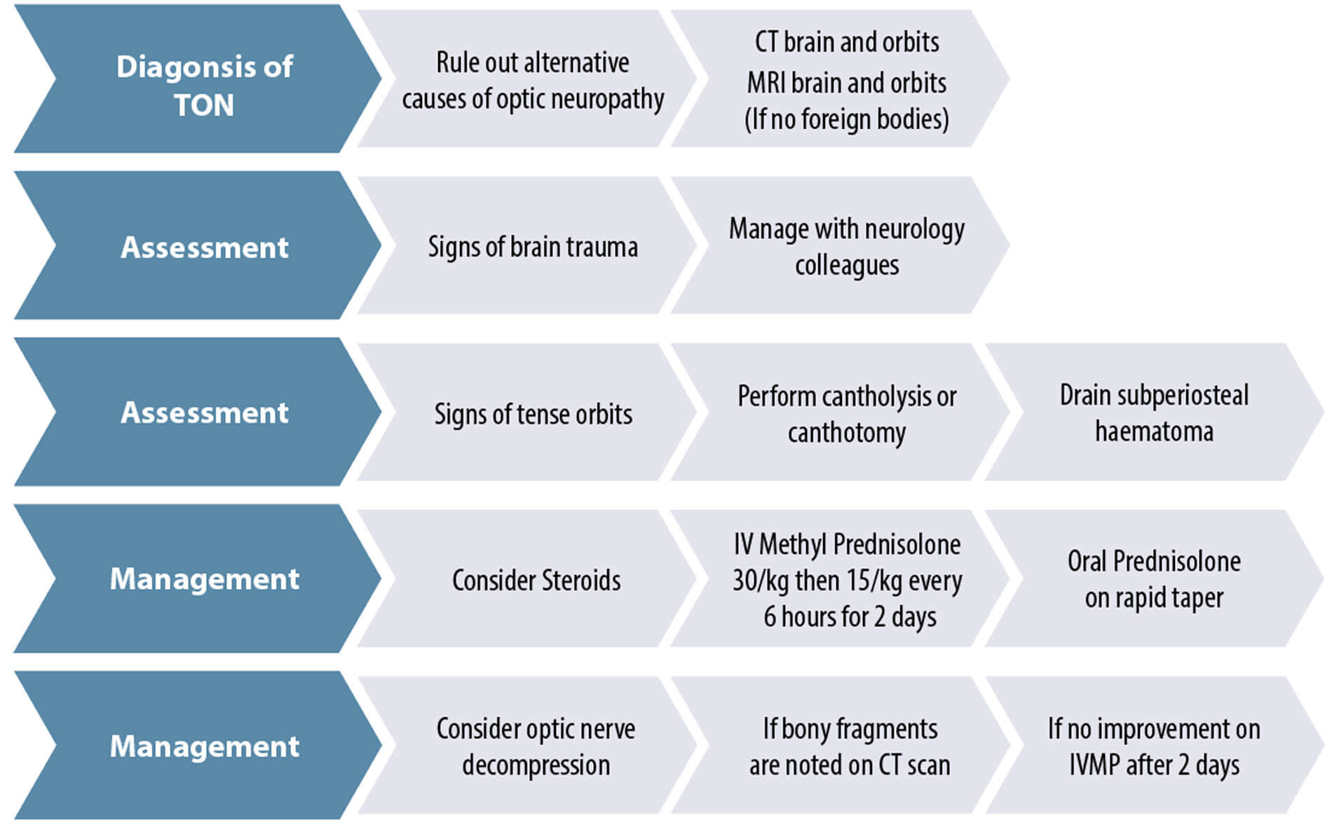 Figure 1: Algorithm for best evidence-based management of traumatic optic neuropathy.