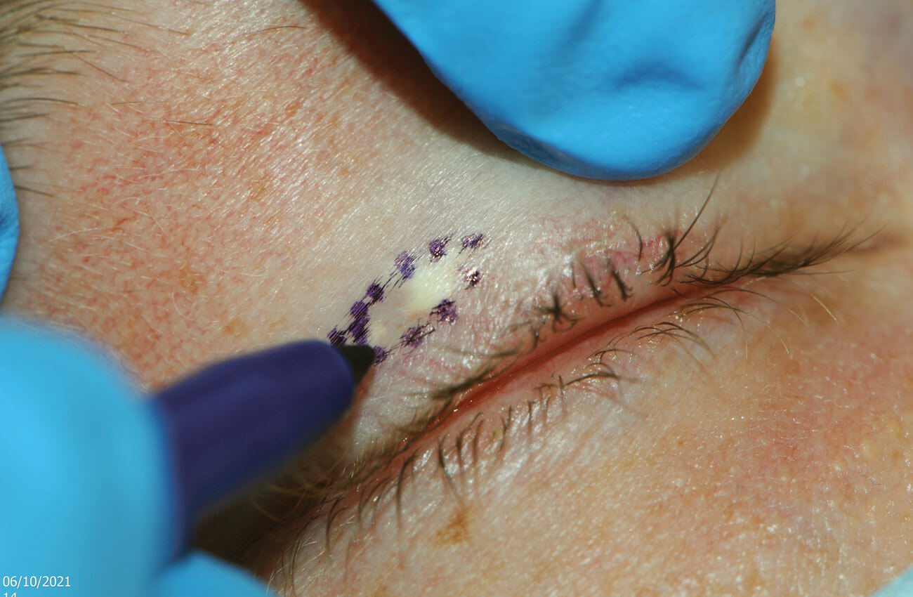 Chalazia are chronic lipogranulomatous inflammations of the eyelid secondary to a blocked meibomian gland. Whilst most resolve spontaneously, certain chalazia warrant treatment. Options include incision and curettage (I&C), lesion excision, intralesional steroid injections, and botox injections [1].