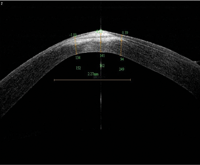Figure 4: Rapid onset corneal ectasia after surface laser enhancement treatment four months after primary LASIK.
