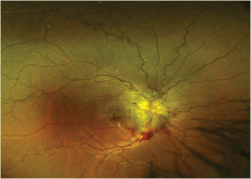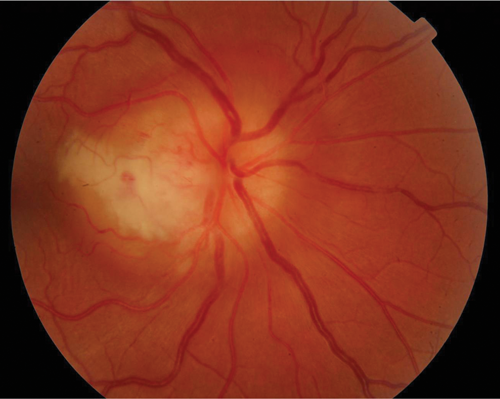 A 30-year-old Caucasian presented with the first episode of unilateral, painless visual loss in one eye upon waking. Crohn’s disease was diagnosed 18 months ago on colonoscopy after a single episode of colitis. She was on no medication. She presented with gross swelling of the optic nerve head on the right and swelling of the left optic nerve head. Vision was 6/36 on the right and 6/9 on the left.