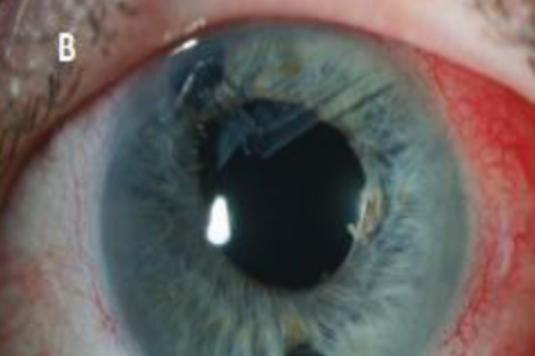Bovine pericardium scleral patch graft associated scleritis: Ahmed valve implant for pupillary block glaucoma