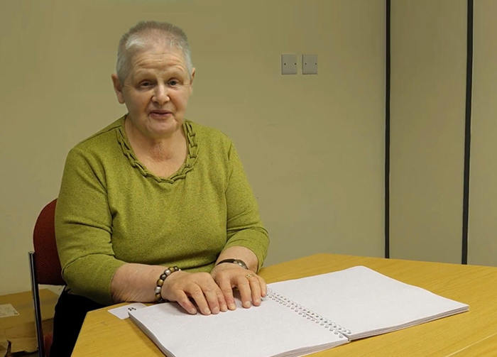 Sue Marshall (80) from Edinburgh, taught braille as a volunteer with national charity RNIB Scotland for many years. Sue has keratoconus, a condition which affects the corneas of the eye. "I was partially sighted until the age of 17 then I became totally blind," she says. Her husband, Alan Dudley, who was born blind, learned braille from the age of six. They both advocate for the practical uses of braille in everyday life.