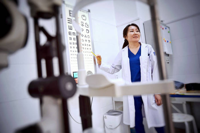 Orbis-trained doctor, Dr Battsetseg, screening a patient in Ulaanbaatar, Mongolia.