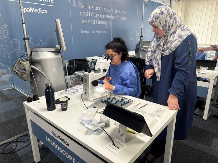 SpaMedica dry labs, with (left to right) Petya Popova and Ibtesam Elaraoud.