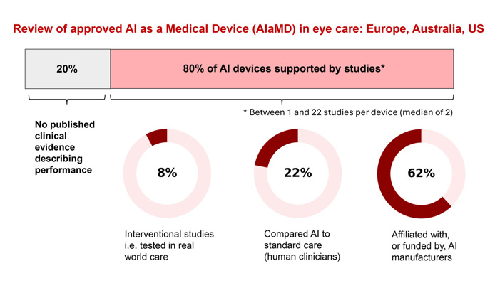 A review of regulator-approved medical AI models in eye care has found that they vary widely in providing evidence for clinical performance and lacked transparency about training data, including details of gender, age and ethnicity.